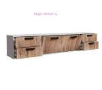 Недорогая подвесная тумба для телевизора шириной 220 см. Тумбу Парус-12 можно дополнительно укомплектовать опорами, которые продаются отдельно.