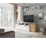 Настенный шкаф для модульной гостиной Альберо с открытыми и закрытыми полками в стильном сочетании белого и золотистого дерева.