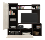 Небольшая гостиная Евро-2 впишется в современную квартиру благодаря лаконичному дизайну. Недорогая стенка для гостиной со шкафом и открытыми полками позволяет хранить книги, разместить предметы декора и технику.