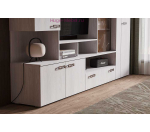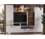 Недорогая стенка в гостиную в светлым цвете с лаконичным дизайном. Гостиная с платяным шкафом и закрытым шкафом для книг или посуды. Стенка впишется в любой интерьер и станет идеальным дополнением вашей квартиры, а матовая стеклостворка с пескоструйным рисунком внесет неповторимую изюминку. Гарнитур выпускается в трех цветовых решениях, имеет вместительный шкаф, оснащенный выдвижной евроштангой, где ваши вещи будут всегда в идеальном состоянии, так же удобные и вместительные ящики и разнообразные полки помогут разместить множество вещей, поддерживая идеальный порядок в комнате.