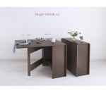 Недорогой стол книжка в цвете венге (тёмное дерево). Стол имеет 3 положения: полностью сложенный, разложенный наполовину или полностью разложенный. Устанавливается на пластиковые подпятники, предохраняющие напольные покрытия от повреждения.