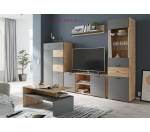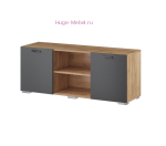 Недорогую ТВ тумбу для гостиной Дублин можно дополнить настенной полкой, пеналом, комодом или столиком из той же серии мебели. Тумба для телевизора Дублин с двумя открытыми полками и двумя закрытыми отсеками для хранения выполнена в современном сочетании серого матового цвета и декора под натуральное дерево.