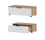 Тумба с выдвижным ящиком может использоваться как напольная или как подвесная. Тумба продается с креплением к стене. Тумба шириной 80 см с белым фасадом из МДФ с геометрическим рисунком и корпусом под дерево, два выдвижных ящика полного выдвижения. Универсальную тумбу можно использовать в гостиной, прихожей и спальне сочетая с другой мебелью серии Орегон.