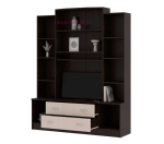 Центральная секция Макарена это гостиная со стеклом, закрывающим полки над телевизионной нишей. Она имеет ширину 1600 мм и является компактной гостиной с двумя выдвижными ящиками и восемью вместительными полками. На полках можно разместить аудио и видеоаппаратуру, а в выдвижных ящиках отлично поместятся зарядные устройства, диски и шнуры для вашей техники. В открытые полки можно поставить книги либо сувениры, различные предметы декора. А в закрытых секциях найдут себе место предметы, которые необходимо убрать от посторонних глаз. Центральная секция Италия изготовлена из прочного высококачественного ЛДСП. Она может быть в двух цветовых решениях венге/дуб белфорт либо ясень шимо темный/ясень шимо светлый.