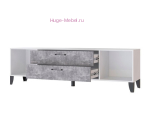 Современная тумба для телевизора шириной 180 см. Тумба Парус-13 белого цвета со светло серым фасадом, тумба с двумя выдвижными ящиками и двумя закрытыми полками. ТВ тумба выпускается в нескольких цветах, высокие опоры черного цвета облегчают уборку.