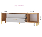 Современная тумба для телевизора шириной 180 см. Тумба Парус-13 с двумя выдвижными ящиками и двумя закрытыми полками. Тумба ТВ с ручками и опорами золотого цвета выпускается в сочетании светлого бежевого цвета кашемир и золотистого дерева. Качественная фурнитура (ящики полного выдвижения и петли с доводчиками) обеспечит долгий срок службы.