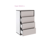 Недорогой комод для детской комнаты с 4 выдвижными ящиками. Удобный комод белого цвета подойдет для мальчиков и девочек. Мебель Асцелла со скошенными фасадами без лицевой фурнитуры, комод с шариковыми направляющими.