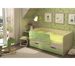 Детская кровать - отличное решение для детской комнаты. Фасад кровати оформлен панелью с рельефным изображением дельфина. Он несет также защитную функцию предотвращает возможность падения ребенка на пол во время сна. Внизу кровати расположен вместительный выдвижной ящик, где можно хранить игрушки или детскую одежду.