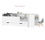 Детская кровать белого цвета может быть куплена отдельно или в комплекте с комодом и шкафами серии Руна.