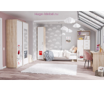 Книжный стеллаж для детской комнаты Бланка с открытыми и закрытыми полками и выдвижными ящиками. Книжные стеллажи Бланка выпускаются с белыми фасадами и с фасадами с рисунком. Направляющие выдвижных ящиков - роликовые, фасады матовые.