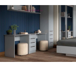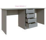 Письменный стол шириной 180 см с 4 выдвижными ящиками. Стол визуально разделен тумбой с выдвижными ящиками на две части. Стол в светло-сером цвете входит в серию мебели Мадрид и сочетается со стеллажами, шкафами и навесными полками из той же серии, что удобно для создания комплекта мебели.