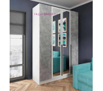Антресоль высотой 30 см для прямых шкафов Мадрид шириной 1.6 метра белого цвета с фасадами в светло-сером цвете ателье. Антресоль с четырьмя створками, открытие по нажатию. Внутри пространство антресоли разделено на три отсека.