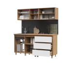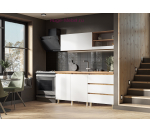Недорогая кухня Хелен длиной 1.7 метра представляет собой готовый к монтажу комплект кухонной мебели. В стоимость кухонного гарнитура входит 2 столешницы (100 и 70 см) в цвете "Дуб вотан" толщиной 38 мм. В комплект входят 4 кухонных шкафа, размером 70 и 100 см. Кухня белого цвета с корпусом под дерево.
