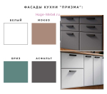 Современная и недорогая кухня 3.2 метра с фасадами МДФ. Кухонный гарнитур можно купить как готовый набор мебели или составить кухню по своим размерам. Модульная кухня Призма представлена в нескольких цветах и большой выбор шкафов, пеналов и буфетов позволяет составить любой кухонный гарнитур. Матовые фасады МДФ с покрытием предотвращающим появление отпечатков, ручки темно-серого цвета.