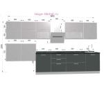 - Длина кухни: 380 см, универсальная сборка с возможностью перестановки кухонных модулей;
