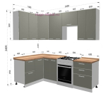 Небольшая угловая кухня 240х140 см с прямыми матовыми фасадами из МДФ. Удобная кухня с высокими верхними шкафами в светло сером цвете. Кухонный гарнитур Катрин модульный, размеры кухни, высоту шкафов и их наполнение можно изменить. Для расчета стоимости по вашим размерам обратитесь к менеджерам интернет-магазина мебели.