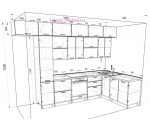 - Высота кухни: 250 см (высота пенала 214 см + высота антресольного шкафа 36 см);
