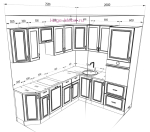 - Размер кухни по стене 200х250 см, сборка универсальная на правую или левую сторону;
