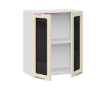 Кухонный шкаф верхний со стеклом для модульной кухни Катрин Стекло + МДФ с фасадами в цвете крем. Размеры шкафа:
