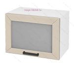 Горизонтальный кухонный стеклянный шкаф для модульной кухни Альфа с фасадом Стекло + МДФ в цвете брюле. Размеры шкафа: