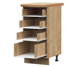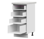 В комплектацию входит: корпус, фасад, ручки, фурнитура для сборки, пластиковые регулируемые ножки, нижний цоколь из ЛДСП. Нижний кухонный шкаф 4 ящика продаётся без столешницы, схема сборки кухонного шкафа в комплекте.