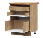 В комплектацию входит: корпус, фасад, ручки, фурнитура для сборки, пластиковые регулируемые ножки, нижний цоколь из ЛДСП. Нижний шкаф кухонный с двумя ящиками продаётся без столешницы, схема сборки кухонного шкафа в комплекте.
