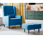 Прямоугольный пуф с обивкой из велюра синего цвета и ножками высотой 15 см черного цвета. Пуфы Корк подходят к креслам для отдыха той же модели. Обивка пуфа - плотный микровелюр с водоотталкивающим покрытием.