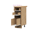В комплектацию входит: корпус, фасад, ручки, фурнитура для сборки, пластиковые регулируемые ножки, нижний цоколь из ЛДСП. Кухонный шкаф нижний с тремя ящиками продаётся без столешницы, схема сборки кухонного шкафа в комплекте.