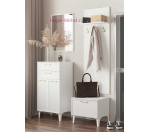 Недорогая настенная вешалка белого цвета подходит для модульной прихожей Толедо. Вешалка с тремя крючками золотистого цвета с удобной полкой. Настенную вешалку шириной 60 см можно дополнить тумбой для обуви Толедо.