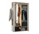 Небольшая и узкая прихожая длиной всего 120 см несмотря на свои компактные размеры сочетает в себе всё необходимое для хранения вещей: вешалку для одежды, небольшой шкаф с зеркалом и отсеки для обуви. Прихожая Франк выпускается в двух цветовых решениях: золотистый крафт и белый ясень и венге/лоредо.