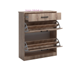 Недорогая обувница с двумя отделениями для обуви и выдвижным ящиком. Тумба для обуви Ева входит с серию мебели для прихожей. Обувница выпускается в двух цветах: темное дерево таксония и светлое дерево - дуб баррик.