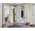 Высокая обувница с выдвижным ящиком для хранения мелочей на шариковых направляющих полного выдвижения и глухими открывающимися вниз фасадами с отсеками под обувь. Повесив над обувницей зеркало навесное ЛЗ-30, Вы получите отличный комплект мебели для коридора.