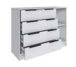 Длинный комод 1.2 метра с 4 выдвижными ящиками и одной створкой. Вместительный комод белого цвета высотой 92 см с полностью закрытой системой хранения, за распашной дверцей одна полка. Комод входит в серию мебели Мадрид, подходит для любого помещения и сочетается со шкафами, тумбами, стеллажами в том же цвете. Комоды Мадрид выпускаются  в нескольких цветах и размерах, оснащены современной фурнитурой с механизмом полного выдвижения.