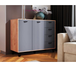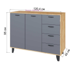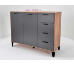 Высокий комод шириной 120 см с 4 выдвижными ящиками и двумя створками. Комод Катрин выпускается в двух цветах: сером и белом с корпусом под дерево.