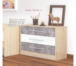 Недорогой комод Лофт с тремя выдвижными ящиками подходит для современного интерьера благодаря актуальному сочетанию цветов и фактур. Комод можно купить купить как отдельный предмет или в составе модульной спальни для подростков "Колибри".