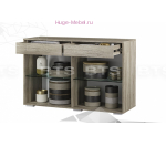 Недорогой комод КМ-10 Наоми с двумя выдвижными ящиками и двумя распашными дверцами со стеклом.. Комод со стеклом может использоваться как ТВ тумба. Большой комод с МДФ фасадами серого цвета и фактурным древесным декором сочетается с модульной спальней и гостиной Наоми.