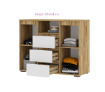 Большой комод с тремя выдвижными ящиками и двумя дверцами из серии мебели Хелен. Удобный комод длиной 120 см выпускается в двух цветах: белом и сочетании белого и дуба. Комод оснащен шариковыми направляющими полного выдвижения.