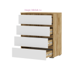 Удобный недорогой комод с 4 выдвижными ящиками на шариковых направляющих. Комод из серии мебели Хелен выпускается в двух цветах: белый и сочетание белого и дуба крафт.