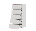 Высокий недорогой комод с 5 выдвижными ящиками на шариковых направляющих. Комод из серии мебели Хелен выпускается в двух цветах: белый и сочетание белого и дуба крафт.