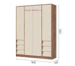 - 4-х створчатый шкаф со штангой, полками и 6 выдвижными ящиками (ШхВхГ): 1600х2100х500 мм.