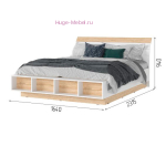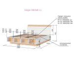 - Двуспальная кровать со спальным местом 160х200 см, размеры кровати 1640х940х2315 мм. Основание кровати - березовые ламели на металлическом каркасе, подъемного механизма нет;