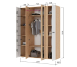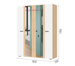 - Распашной 4-створчатый шкаф с зеркальными створками, (ШхВхГ): 1600х2100х500 мм;