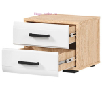 Недорогая прикроватная тумба с двумя выдвижными ящиками и белым глянцевым фасадом. Прикроватная тумба с корпусом в цвете дуб сонома и черными ручками, закругленные фасады из МДФ. Выдвижные ящики установлены на современных шариковых направляющих полного выдвижения. Ширина прикроватной тумбы 40 см, конструкция без открытых полок поможет сохранять всё необходимое в идеальном порядке. Тумбы Либерти подходят для спального гарнитура Либерти в том же стиле.