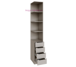 Угловое завершение для шкафов Мадрид в цвете кашемир с открытыми полками и 4 выдвижными ящиками. Угловой стеллаж для шкафов собирается на левую сторону и выпускается в нескольких цветах, включая светлый бежевый.