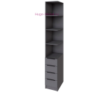 Угловое завершение для шкафов Мадрид в цвете графит с открытыми полками и 4 выдвижными ящиками. Завершение для шкафа собирается на правую сторону и представляет собой угловой стеллаж.
