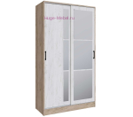 Недорогой шкаф купе шириной 120 см и высотой 220 см с двумя раздвижными дверьми и зеркалом. Внутри шкафа стационарная штанга и отсек с полками. Зеркала с фацетной обработкой. Компактный шкаф-купе выпускается фабрикой в нескольких цветовых решениях, в том числе в сочетании декоров под дерево дуб крафт серый и дуб крафт белый.