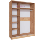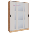 Шкаф купе шириной 160 см и высотой 220 см с тремя раздвижными дверьми и зеркалом. Внутри шкафа стационарная штанга и отсек с полками. Зеркала с фацетной обработкой. Шкаф-купе 1.6 метра выпускается фабрикой в нескольких цветовых решениях, в том числе в сочетании светлого кремового цвета кашемир и древесного декора дуб крафт золотой.