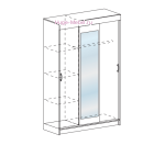Недорогой шкаф купе с большим зеркалом и тремя дверями. Шкаф купе с двумя отделениями: отделение со штангой и полками. Наполнение: слева отделение с тремя полками, справа штанга. Полки над штангой нет.