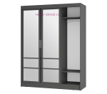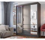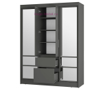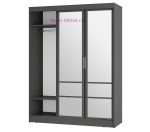 Шкаф-купе серого цвета с зеркальными створками и двумя выдвижными ящиками. Современный шкаф купе шириной 160 см с 3 отделениями внутри: два отсека со штангой для одежды по бокам и отсек с полками и двумя выдвижными ящиками в центре. Центральные створки шкафа распашные, две зеркальные двери - купе. Шкафы Симпл ШКК-06 выпускаются в двух цветах: графит и белый и подходят для любого современного интерьера.