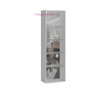 Надстраиваемый пенал-витрина, как следует из названия, располагается на тумбе для ТВ-техники. Данный модуль входит в серию мебели для гостиной Ливорно и выполняет в первую очередь декоративную функцию. На стеклянных полках можно хранить книги, фотографии, памятные вещи. Рамочный профиль с патиной, создающей эффект искусственного старения, стекла с фацетной обработкой и гравированным геометрическим узором притягивают взгляд. Внутренняя стенка витрины имеет зеркальную поверхность. Специальная защитная пленка с оборотной стороны делает зеркало прочным и безопасным, и даже если стекло разобьётся, оно не осыплется. Сборка пенала-витрины универсальная — его можно собрать как на правую, так и на левую сторону.
